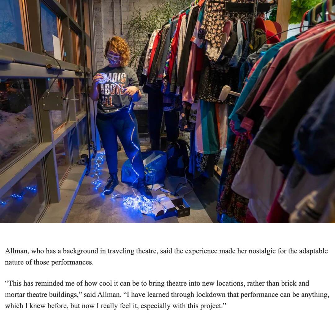 an innovator and marketing super-nerd. During the winter of 2021 Jen created and and produced Window Plays — a live theatrical walking tour created within the confines of pandemic-era performance. Read about Window Plays in American Theatre Magazine. Jen also directed two sold-out runs of the award-winning, Lucky: A Musical.